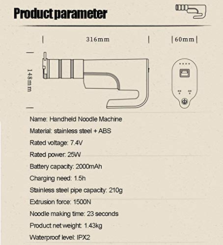 【Dettagli】 1. Materiale: le parti di questa macchina per noodle a contatto con il cibo sono realizzate in acciaio inossidabile 304 per prevenire la ruggine; 2. Alimentazione: adotta l’alimentazione CC 12V a bassa tensione e la modalità di alimentazione; 3. Volume ridotto, facile da riporre.