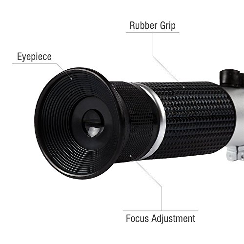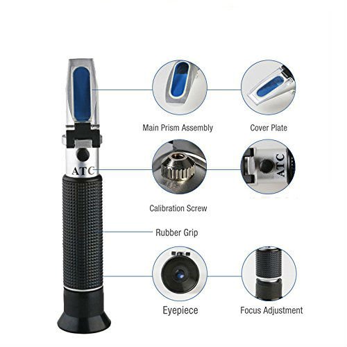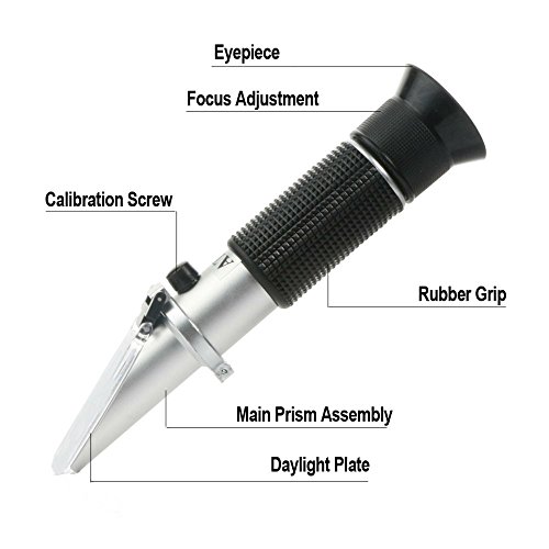 ★ Questo rifrattometro può sostituire il tuo idrometro per misurazioni più facili e accurate. Basta usare il contagocce per prendere un campione di erba e metterlo sul prisma; poi tenere il rifrattometro fino alla luce e guardare attraverso l’oculare.