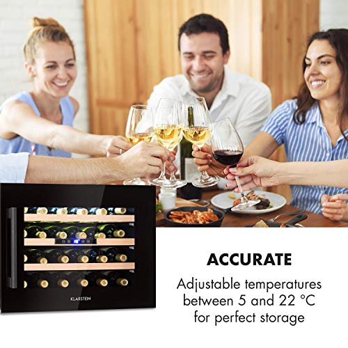 REGOLABILE: Grazie al refrigeratore per vino Klarstein, puoi offrire le condizioni ideali per il vino. Per fare ciò, basta impostare la temperatura di raffreddamento desiderata e la cantina per vini Klarstein si prende cura del “clima ottimale del vino”.