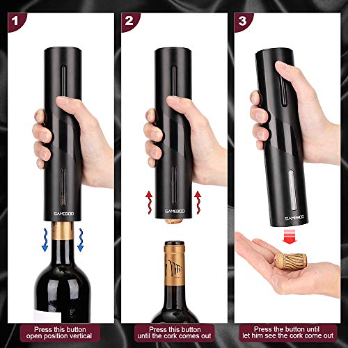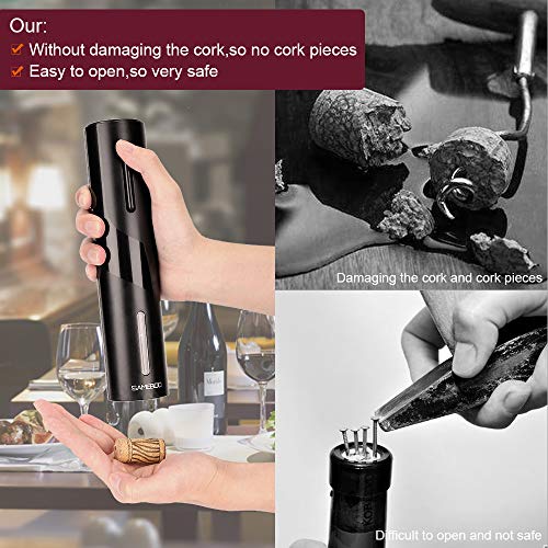 🍷Facile da usare: Inserirlo nella parte superiore della bottiglia, quindi premere il pulsante e la spirale inizierà a ruotare in senso orario fino a quando non entrerà completamente nel tappo della bottiglia. A questo punto, usa sempre il pulsante automatico e la vite del tuo apriscatole elettrico inizierà a ruotare, Design wireless e leggero, tutte le parti sono piccole e portatili, puoi portarlo dove vuoi e usarlo in qualsiasi momento.