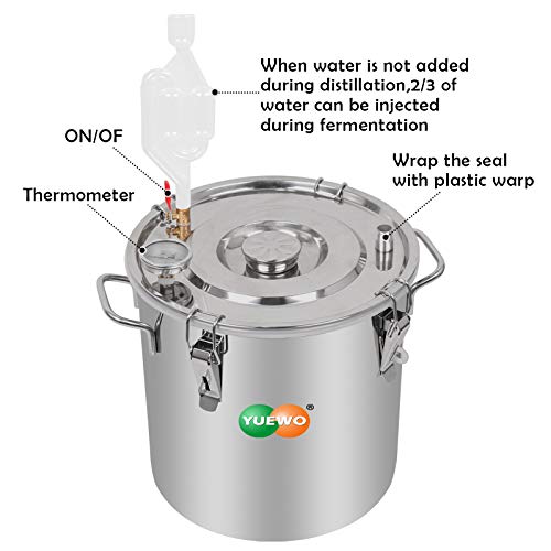 Comodo termometro: il nostro alambicco chiaro di luna con termometro in metallo mostra come: Celsius e Fahrenheit. Assicurati che la temperatura sia precisa durante la distillazione. In questo modo l’operatore può ispezionare facilmente la temperatura durante il funzionamento del distillatore, della piastra a vapore in acciaio inossidabile gratuita e del sacchetto di garza, per evitare che si brucino e ha una distillazione molto migliore.